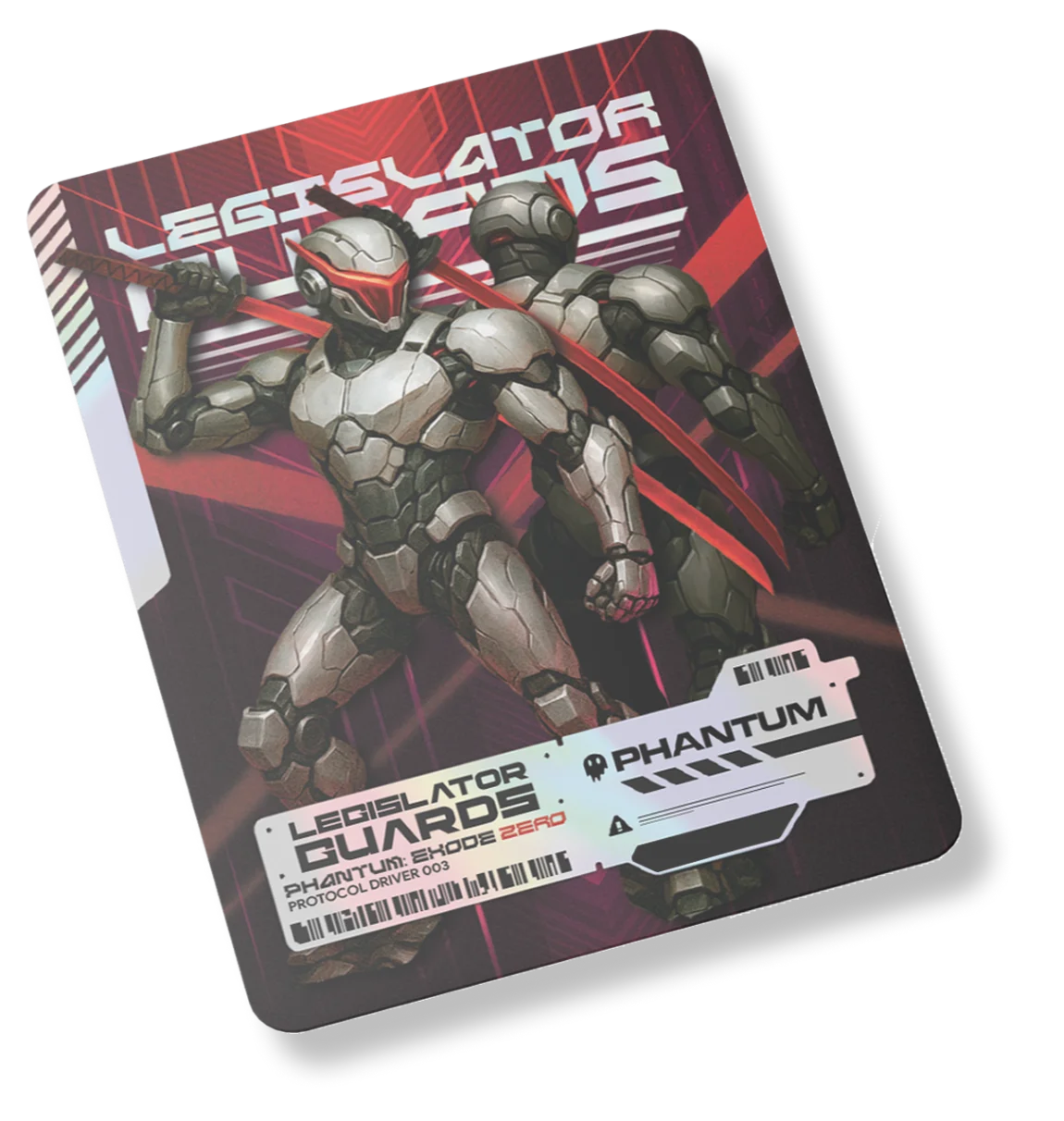 Les Gardes du Législateur furent conçus à partir du code source corrompu des Veilleurs du programme PHNTM. Dépouillés d’individualité, privés de mémoire, reconstruits avec pour seul objectif l’annihilation, ils devinrent la réponse de l’Hégémonie face à la rébellion. Leur création fut sanctionnée par l’Acte Quasar, un décret déclarant que la mémoire de la Terre constituait une menace existentielle.