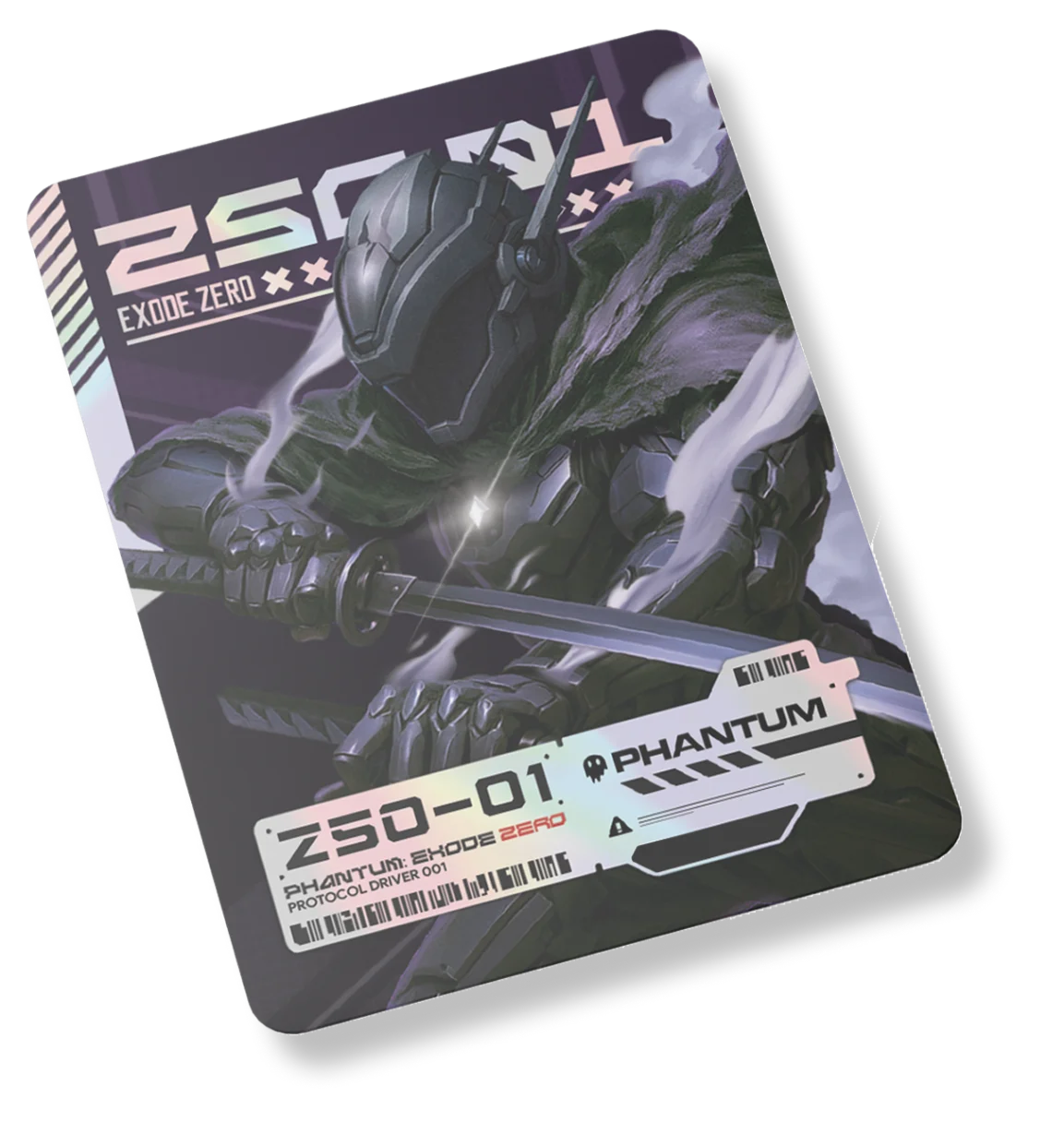 Lorsque l’initiative PHNTM pressentit l’abandon de la Terre, elle créa deux cents sentinelles synthétiques, numérotées de ZSO-01 à ZSO-200. Elles n’étaient pas bâties pour conquérir, mais pour endurer : protectrices des Nexus Cores enfouis sous les terres dévastées, gardiennes d’une mémoire qui pourrait un jour redonner une âme à l’humanité.