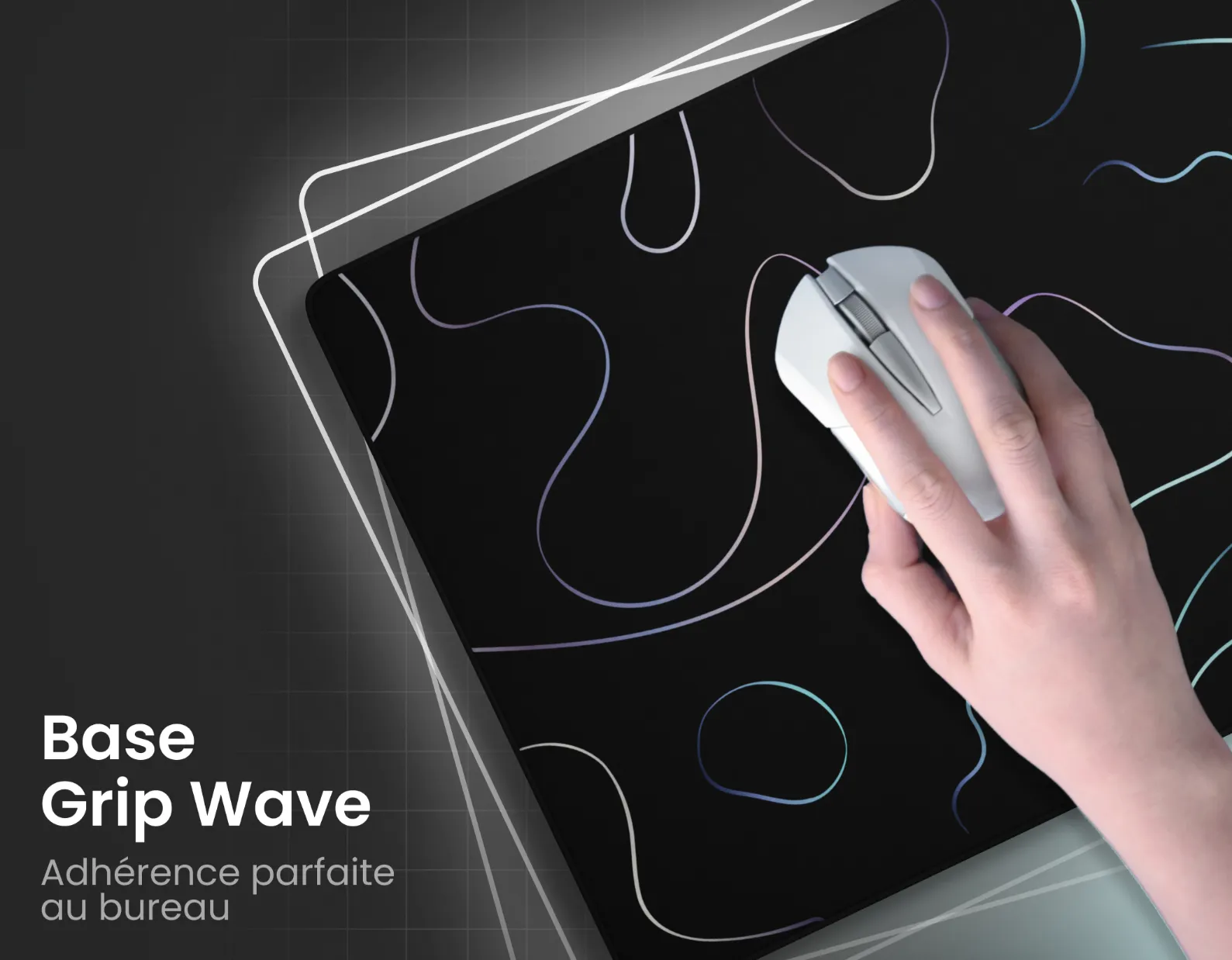 Notre base en caoutchouc écologique maintient fermement le tapis de souris en place, garantissant qu’aucun glissement ou déplacement ne perturbe votre jeu ou votre travail.