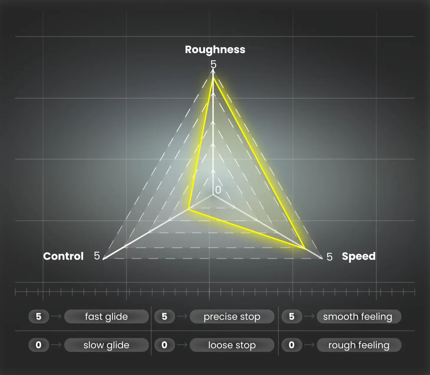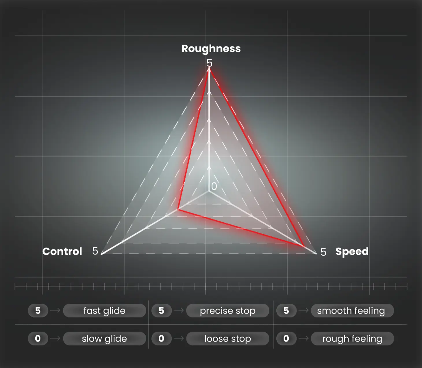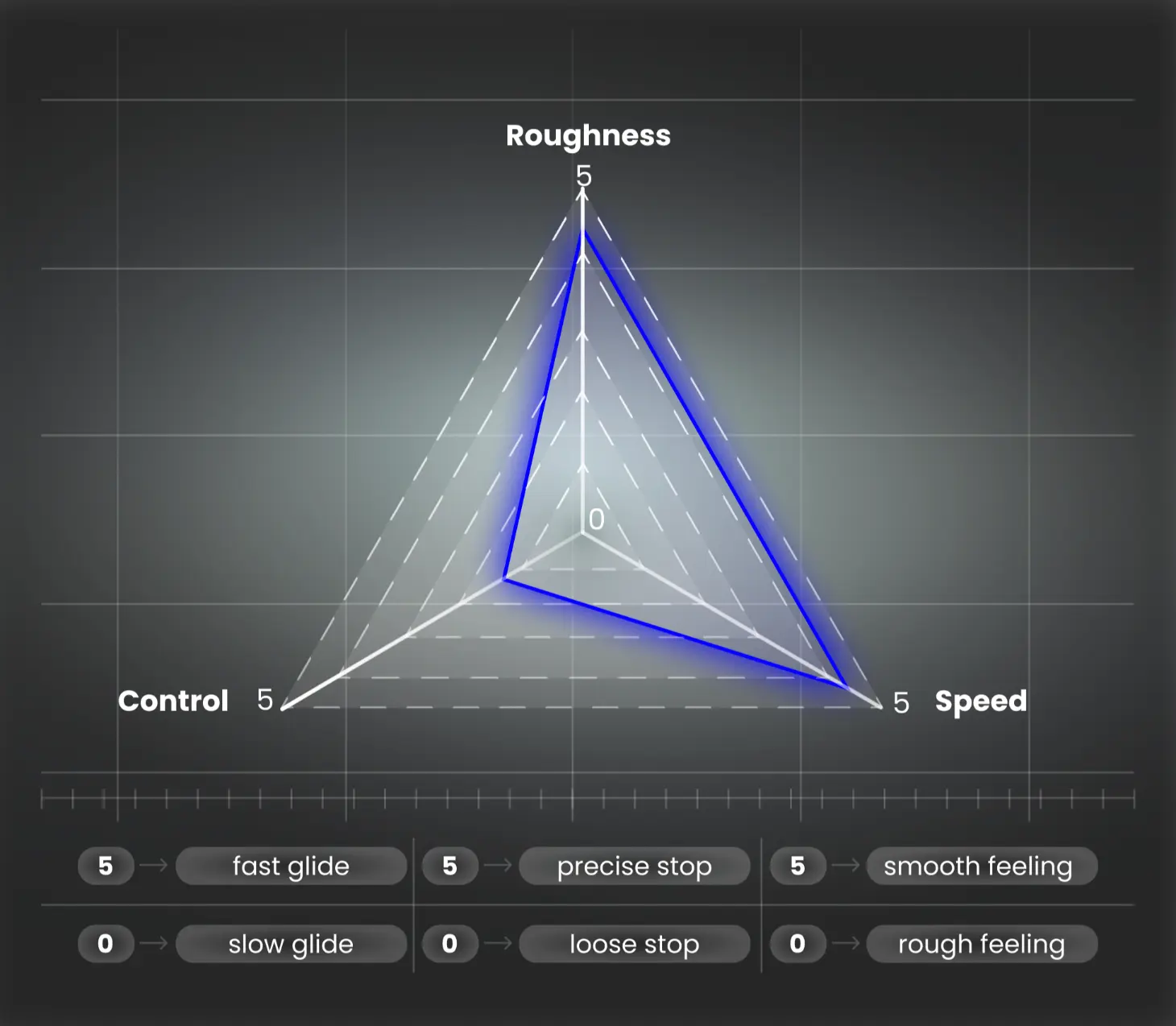 Le ZSO-01 atteint un coefficient de friction statique moyen de 0,12µ offrant une glisse rapide et fluide, sans jamais sacrifier la stabilité ni le ressenti du contrôle. Chaque trajectoire est nette, chaque arrêt est instantané. Ce tapis transforme la surface de jeu en une extension naturelle de votre mouvement, offrant une sensation d’équilibre idéale entre vitesse et maîtrise, que ce soit pour le jeu compétitif ou les longues sessions d’entraînement.