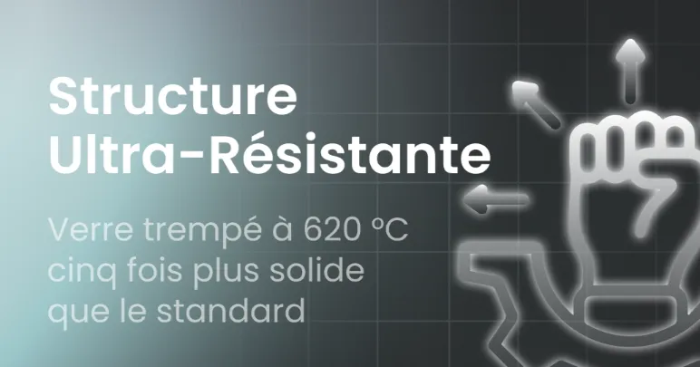 Chaque GlassPad est façonné dans un verre trempé chauffé à 620°C, assurant une résistance structurelle exceptionnelle jusqu’à 5 fois supérieure à celle d’un verre ordinaire. Sa surface est anti-rayures et conserve son toucher d’origine même après plus de 5000 heures d’utilisation intensive. Les bords sont chanfreinés et polis pour un confort parfait, tandis que la base en silicone pleine surface 60A assure une adhérence totale.